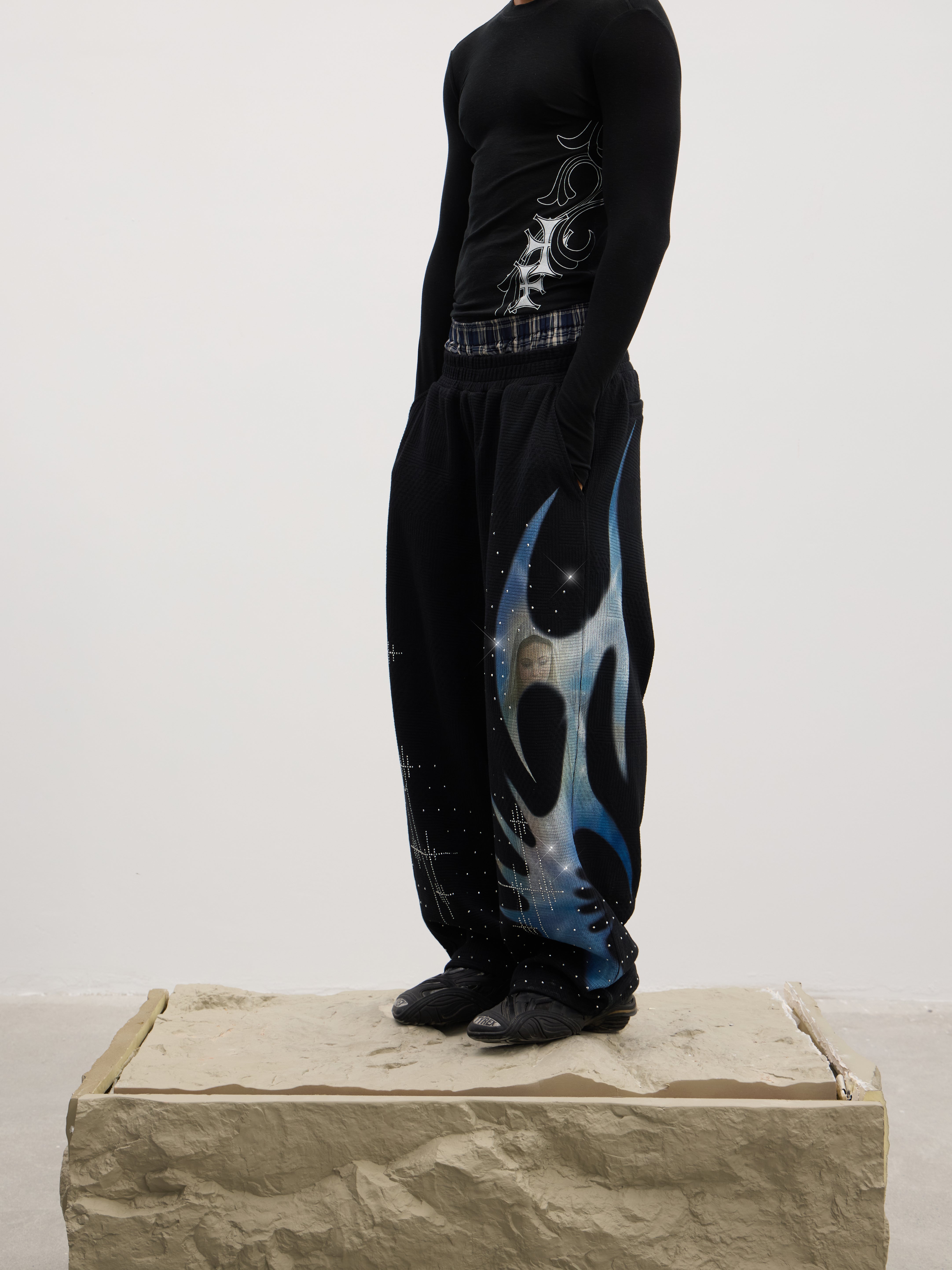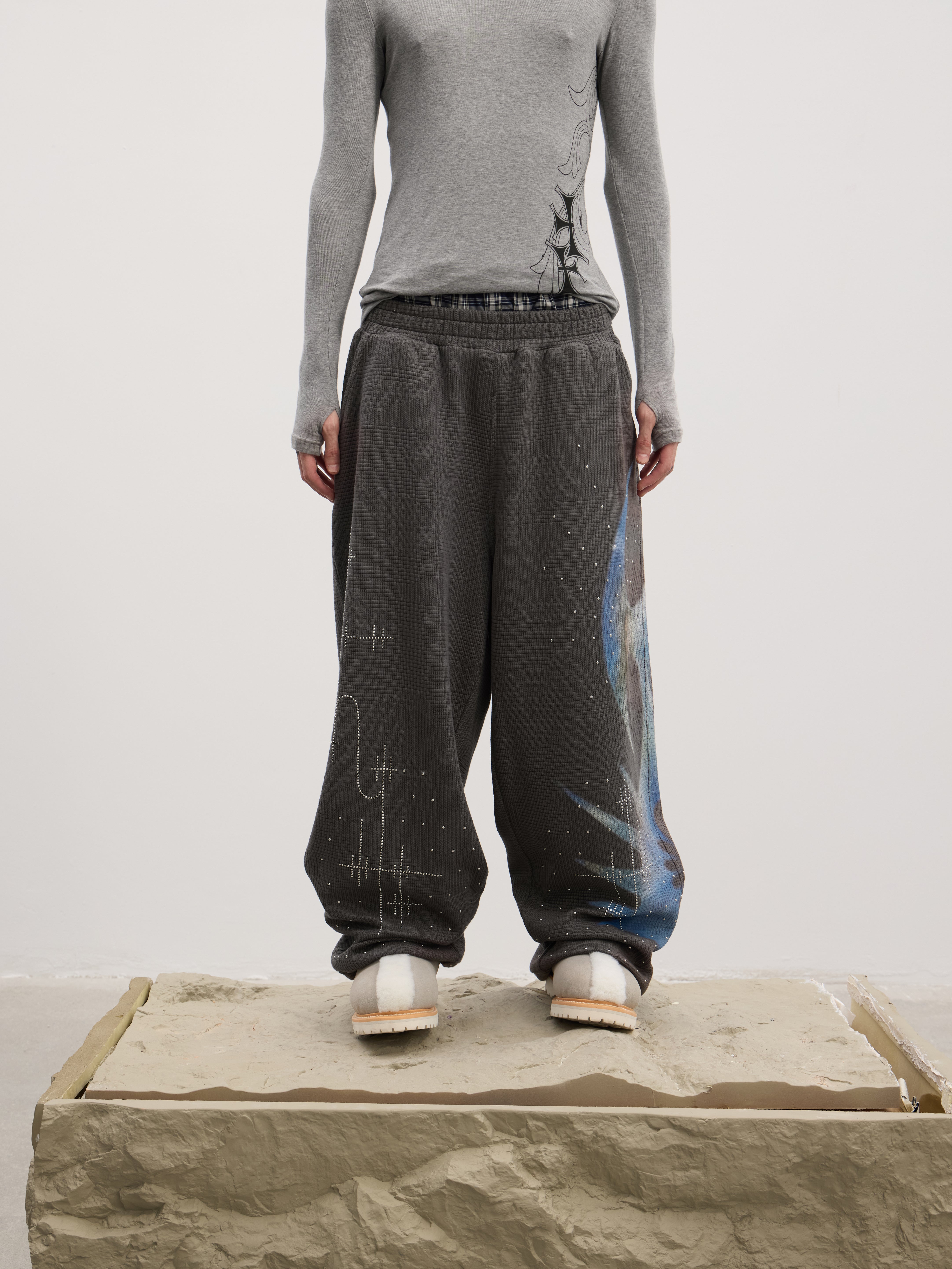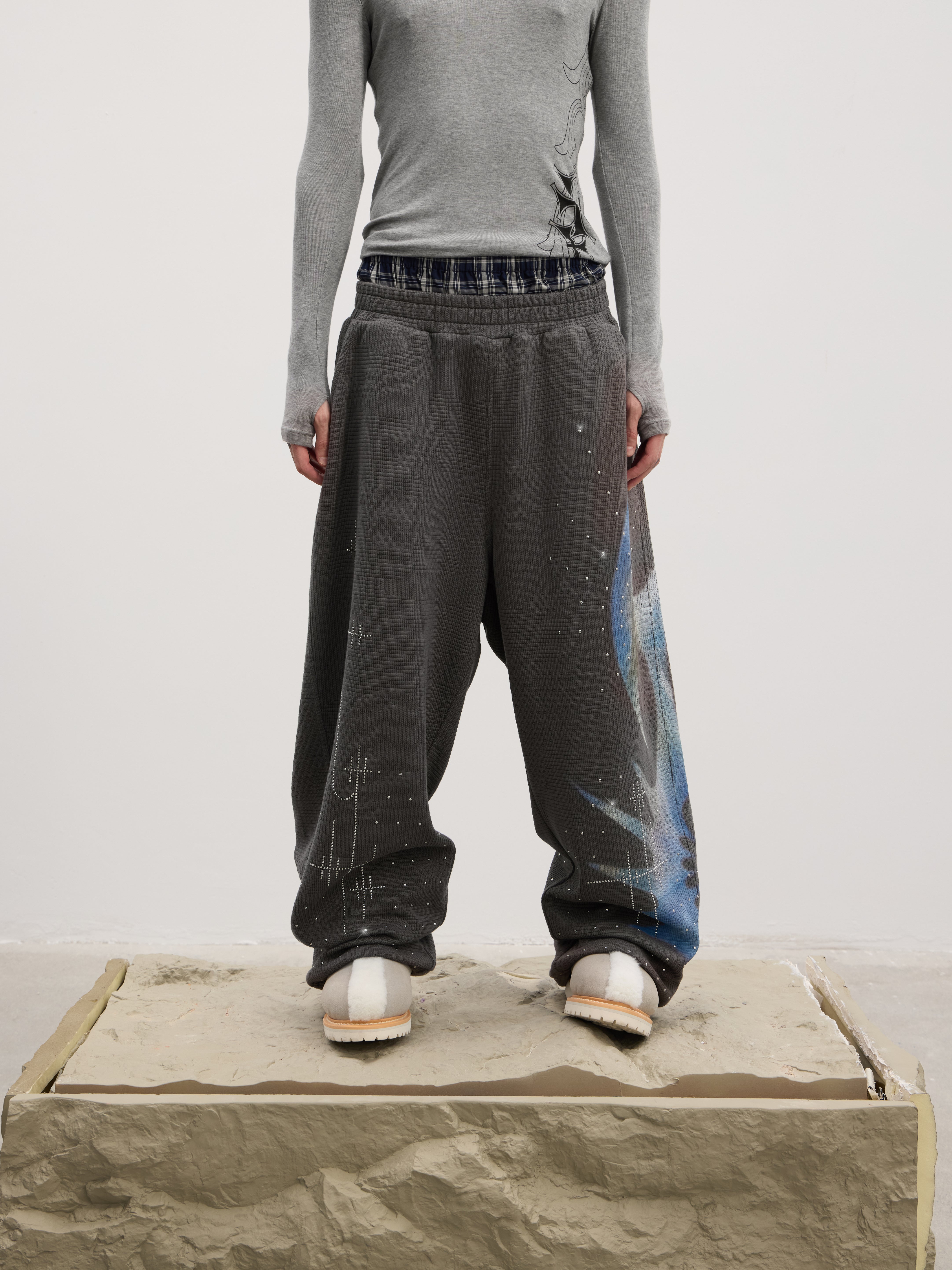 Holy Rhinestone Sweatpants (Grey / Black)